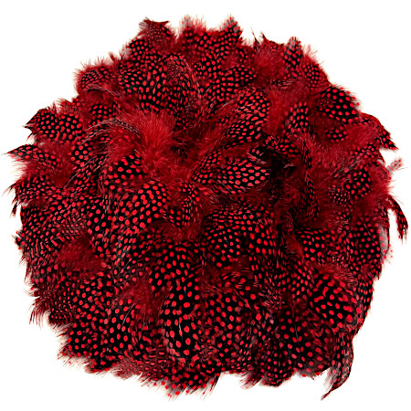 Strung Guinea Fowl Plumage, Large Eyes 3-6" Dyed Red - per 1/2 lb